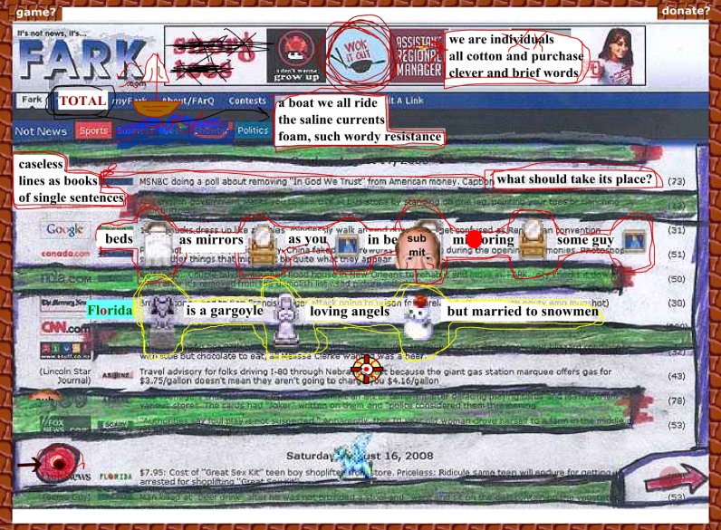 based websites/portals. The game interface drives the poetic texts, the colliding and